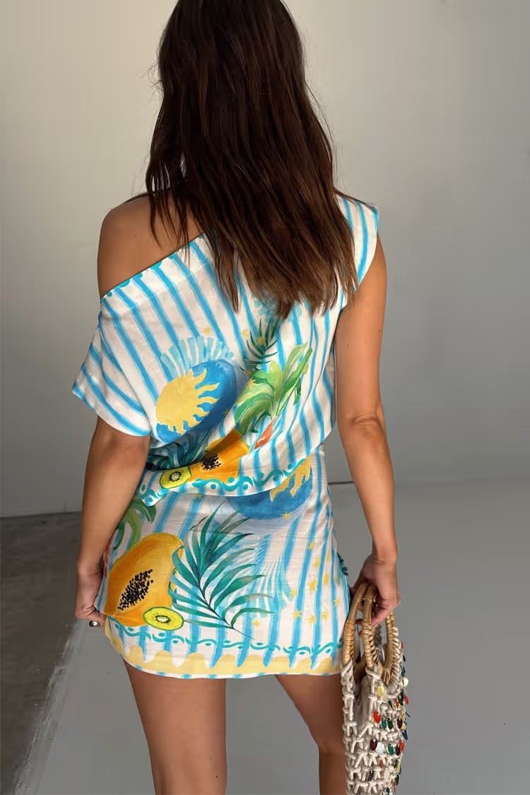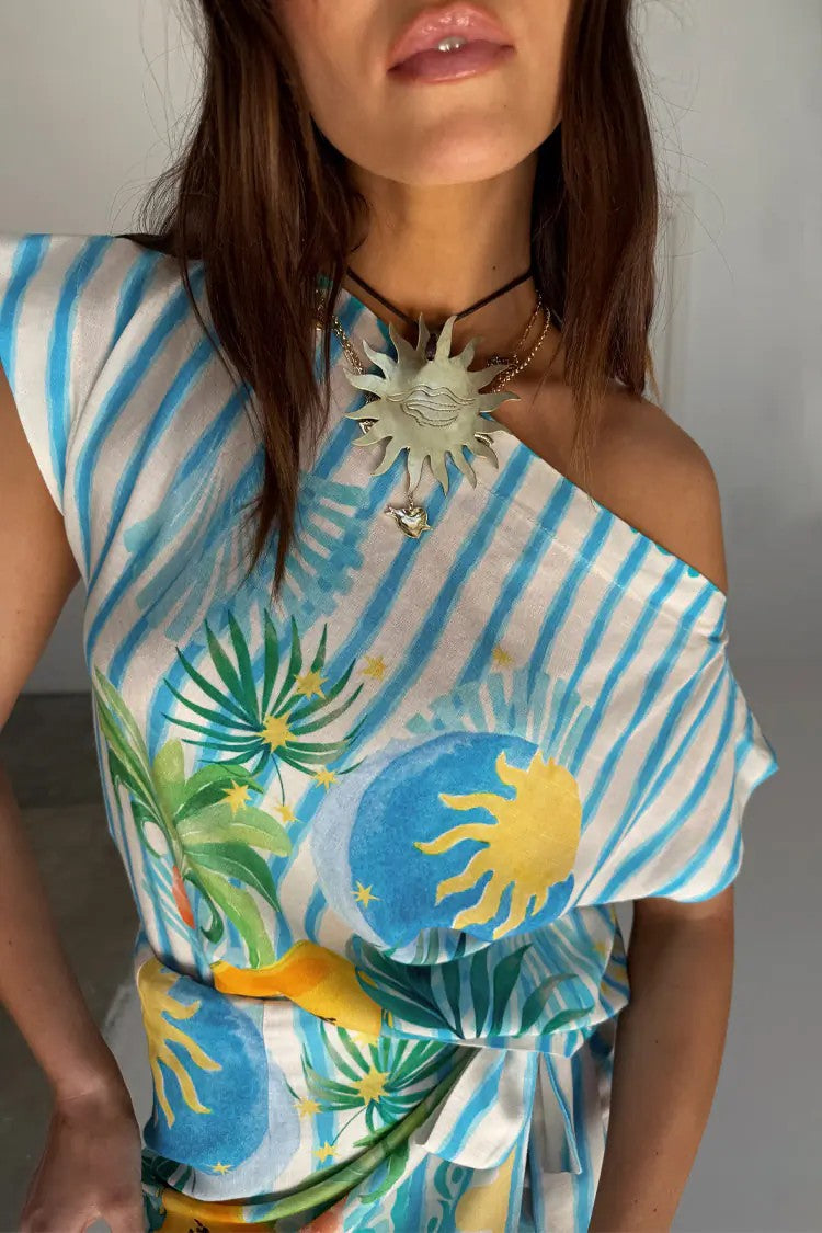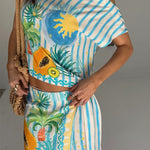 Feel the calm of ocean waves in our Azure Kiss Co- ord set. Designed with a relaxed silhouette and a vibrant tie-dye print, this versatile piece doubles up as a beach cover-up or an easy day dress. Pair it with flats for daytime ease or style it with wedges for a sunset look.